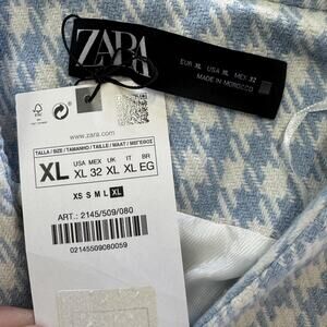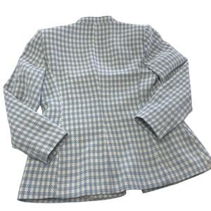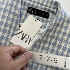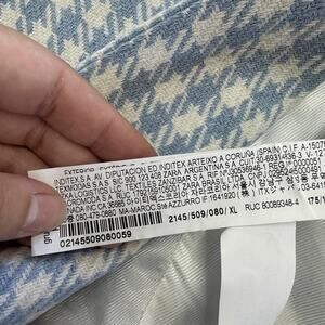 ZARA Blazer Womens XL Blue White Houndstooth Open Front Tweed Lined Preppy