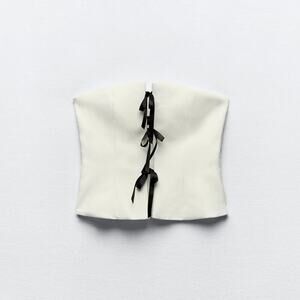 ZARA Blogger Fave Corset-Style Top with Contrast Ties NWT 🤍🖤