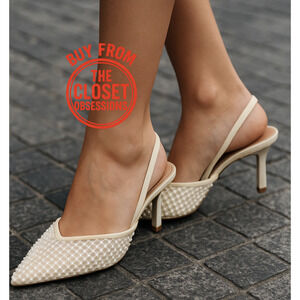 🤍 **ZARA Blogger Fave!** Elegant, feminine, and ultra-glamorous — these pearl-embellished slingback heels make every outfit look luxe.