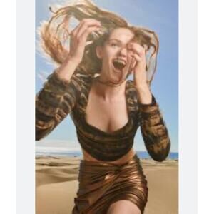 Beautiful combination of neutrals blacks browns make this corset top a statement piece for Thanksgiving dinner or any holiday party.