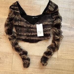 ZARA | Blogger Fave NEW Corsetry Tulle Crop Top XS Long Sleeves Sweetheart Neck