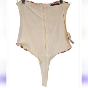 ZARA Pink Floral Rose Ruched Bodysuit Medium Strapless Tube Top Blogger Favorite Romantic Y2K