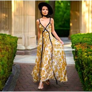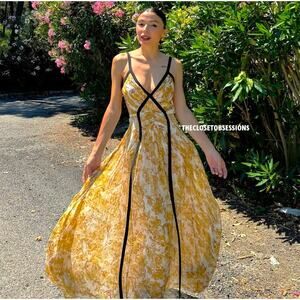 π **Blogger Favorite!** This **ZARA V-Neck Printed Maxi Dress** radiates effortless luxury and warm-weather elegance. Featuring an ecru and yellow baroque-inspired print with bold contrasting straps and a flowy asymmetric hem, itβs the perfect blend of statement and sophistication.