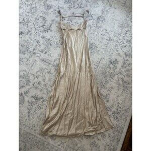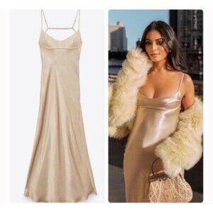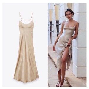 ZARA Bloggers Fav Satin Effect Slip Maxi Dress Beige Champagne Size Small Sexy