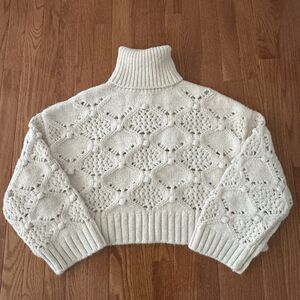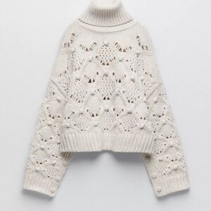 ZARA Bloggers Favorite Chunky Knit Sweater Womens Medium Crochet Turtleneck Boho