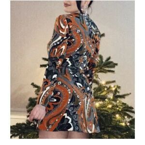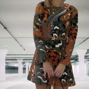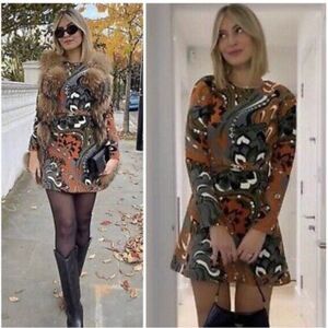 ZARA Printed Short Mini A-Line Dress Multicolored Bloggers favorite NWT 70's inspired