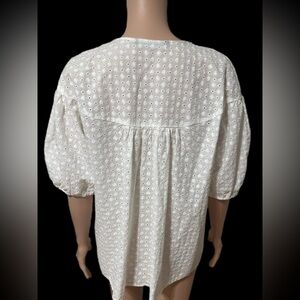 ZARA Blouse Small White Eyelet Cotton Puff Sleeve Embroidered Top Boho