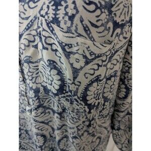 This ZARA Basic Women's Sz L Floral Blue White Button Down Split Neck Tunic Blouse is perfect for any casual or travel occasion. The blouse features a beautiful floral medallion pattern, long roll tab sleeves, and a V-neckline with a button-down collar style. It also has a pullover closure and is made of lightweight viscose material, making it easy to wear and care for with machine washable garment care.