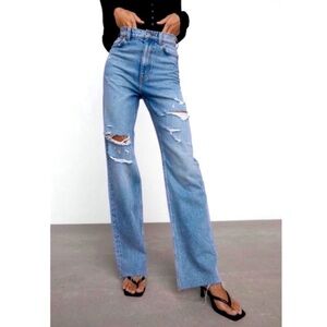ZARA | Blue 90s Full Length Distressed High Rise Jeans