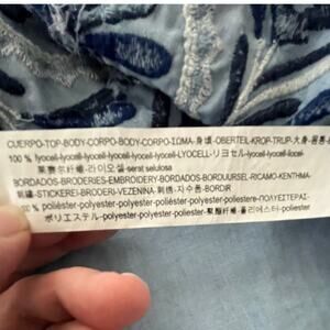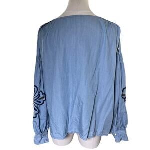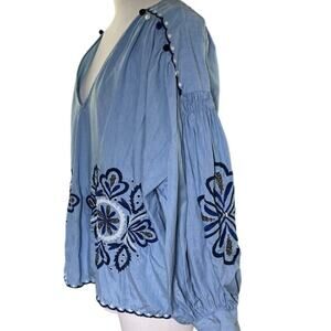 ZARA Blue Embroidered Boho Peasant Top M Lyocell Pom Pom Festival Folkk