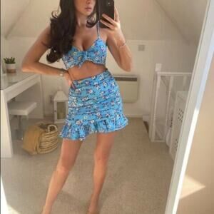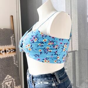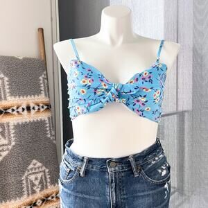 ZARA Blue Floral Print Crop Top With Knot Women’s Size XL Art. 3067/030