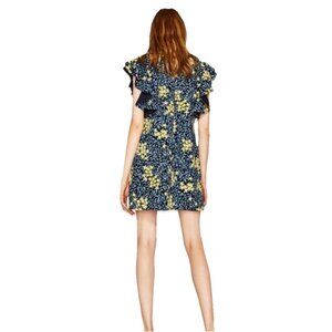 ZARA Blue Floral V-neck Ruffle Sleeve Short Casual Dress Sz XL