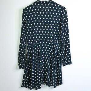 ZARA Blue Green White Shirt Dress Collared Button Geometric Long Sleeves - Large
