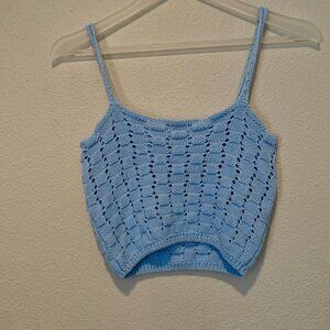 Stay cool and stylish in this ZARA blue knit cami top featuring a delicate tie front and airy crochet-style pattern. A perfect addition to your summer or boho wardrobe!