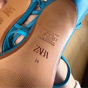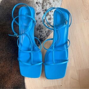 ZARA Blue Leather Strappy Square Toe Heeled Size 39 US 8