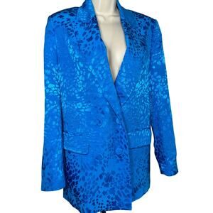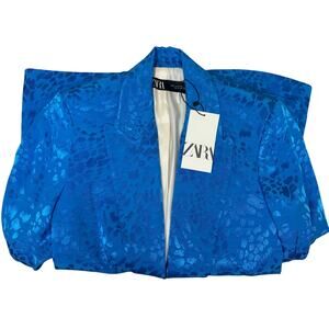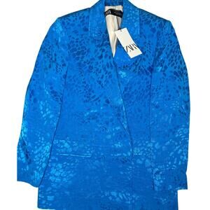🧿 ZARA Blue Leopard Jacquard Blazer – XS (Oversized, NWT!)