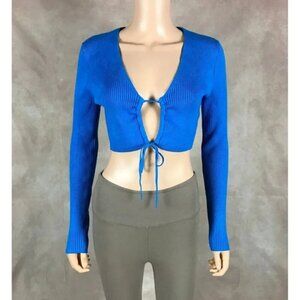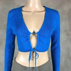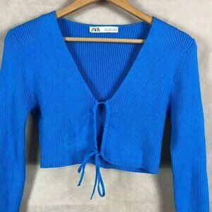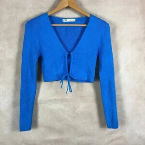 ZARA Blue Long Sleeve Cropped Tie Front Shrug