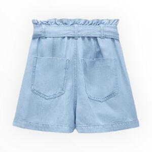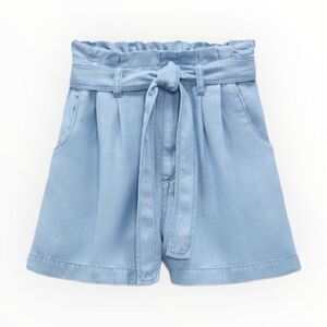 💙 Chic and comfy, these Zara paperbag Bermuda shorts feature a flattering high waist and adjustable tie belt for a perfect fit. Crafted in lightweight denim for a relaxed yet stylish look, perfect for everyday wear.