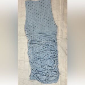 ZARA Blue Polka Dot Mini Dress Ruched V Neck Women’s Size Large NEW
