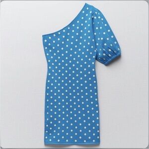 ZARA Blue Polka Dot One-Shoulder Bodycon Dress