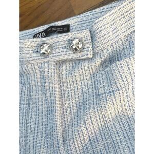 ZARA Blue Silver Tweed Structured Flared Pants Trousers Metallic Small