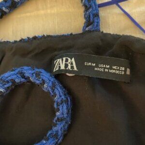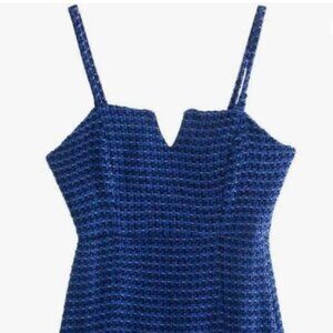 ZARA Blue Tweed Textured Mini Dress With Straps (Size M)