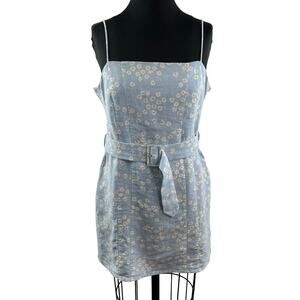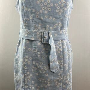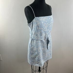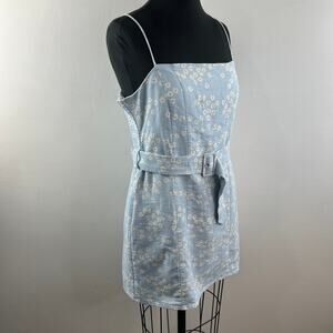 Zara Blue White Floral Print Mini Dress Belted Sleeveless Linen Blend Size XL
