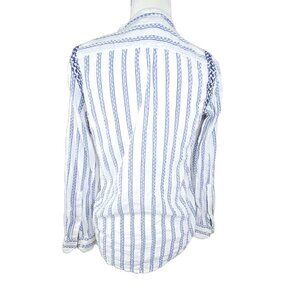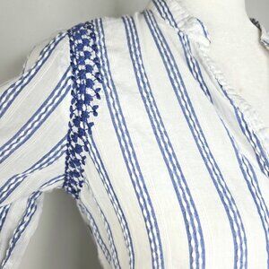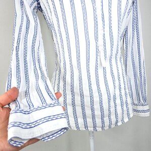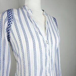 ZARA Blue White Striped Embroidered Coastal Long Sleeve Button Front Top