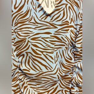 ZARA Blue Zebra Animal Print Midi Dress – Size Small, NWT