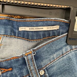Trendy straight leg jeans by Zara. Features a stylish blue and white design. Perfect for casual wear.