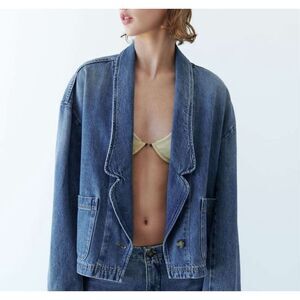 ZARA Blue Long Sleeve Lapel Collar Button Front Classic Denim Blazer Jacket XS
