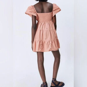 ZARA Blush Pink Mini Sundress Cutwork Embroidery Size Small Preppy Summer