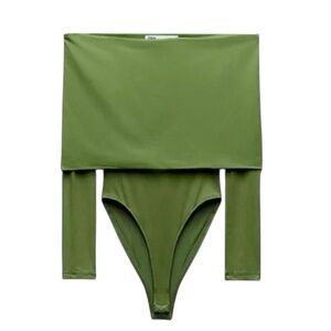 Chic and sleek, the ZARA Long Sleeve Foldover Bodysuit in green is a versatile wardrobe staple! This figure-flattering bodysuit features a stylish foldover detail and a comfortable long-sleeve design. The rich, vibrant olive green color adds a touch of sophistication, making it perfect for both casual and dressy occasions. Pair it with jeans for a laid-back look, or with a skirt and heels for a night out. It's a fun and fashionable piece that effortlessly elevates any outfit!