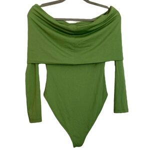 ZARA Bodysuit Long Sleeve Foldover Top Bright Olive Green Silky Smooth Stretch