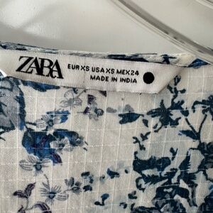 ZARA Boho Floral Print Ruffle Maxi Dress White & Blue Blogger Favorite XS