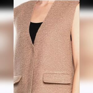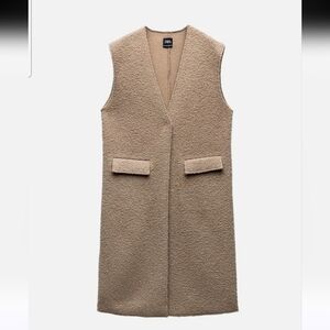 ZARA Bouclé Long Vest Sweater Jacket Taupe Mink Brown.Small.NWT
