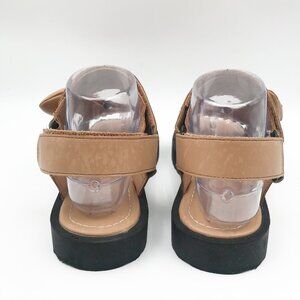 ZARA Bow Velcro Tan Flat Neutral Beige Square Toe Sandals Womens 6.5