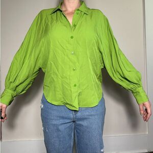 ZARA Bright Lime Green Oversized Artsy Button Up Top Sz XS