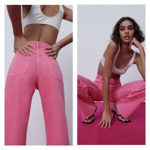 NEW without tags ZARA Blogger Favorite Pink High Rise Wide Leg Jeans