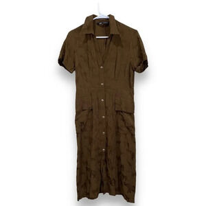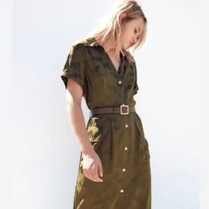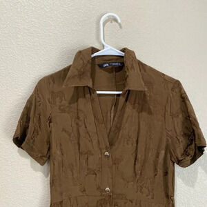 ZARA Brown Animal Novelty Print Satin Dress Size Small Safari Collared Summer
