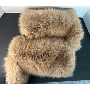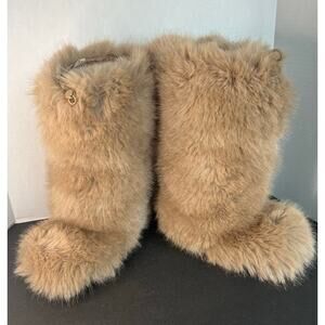 ZARA Brown Cream Faux Fur Limited Edition Mid Calf Toggle Pull Flat Boots READ