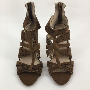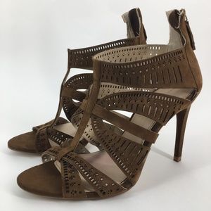 ZARA Brown Suede Caged Stiletto Sandal Size 9