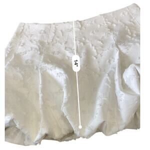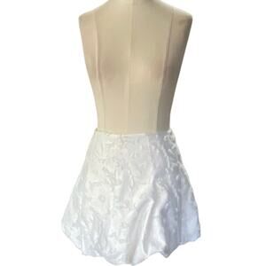 The ZARA Bubble hem mini skirt in white, size small, is a stylish and trendy addition to any woman's wardrobe. With its short length and bubble hem feature, this skirt is perfect for adding a touch of femininity to any outfit. Made by the popular brand Zara, known for its quality and fashion-forward designs, this skirt is sure to become a versatile staple in your closet.