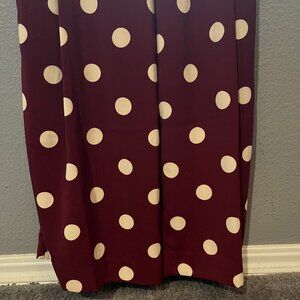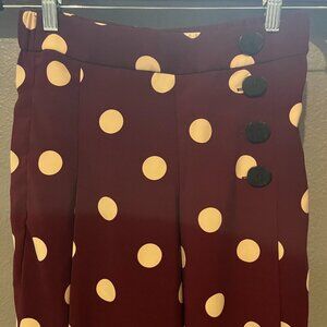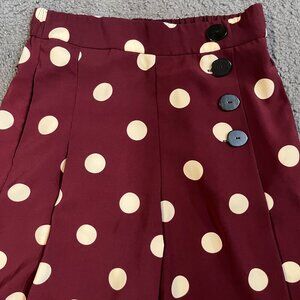 ZARA Burgundy & White BIG Polka Dot Wide Leg Palazzo Pants - Side Buttons