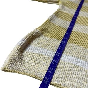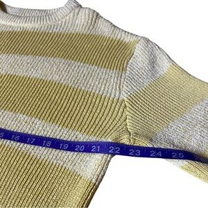 Cozy and chic Zara oversized knit sweater in a stylish yellow and white striped pattern. This long-sleeve crew neck sweater offers a relaxed and comfortable fit, perfect for layering or wearing on its own.