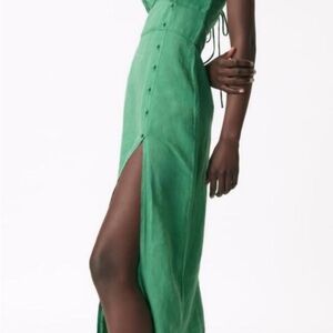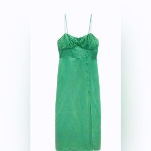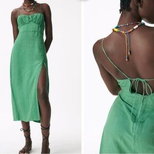 ZARA Buttoned Linen Midi Dress with High Split