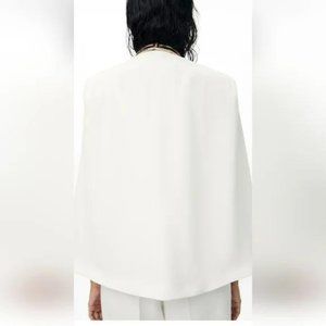 V-neck jacket with long cape sleeves with slits. Tonal interior viscose lining
