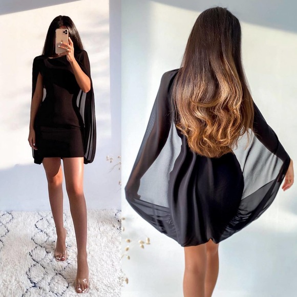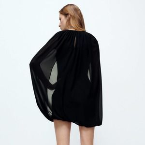 ZARA CAPE STYLE MINI DRESS BLACK M