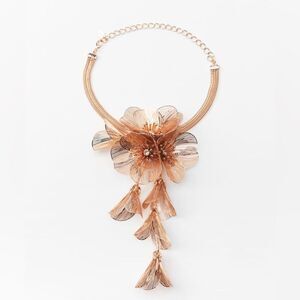 Metal necklace with flower appliqués. Lobster clasp closure.