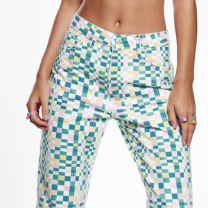 ZARA CHECK PRINT STRAIGHT FIT JEANS